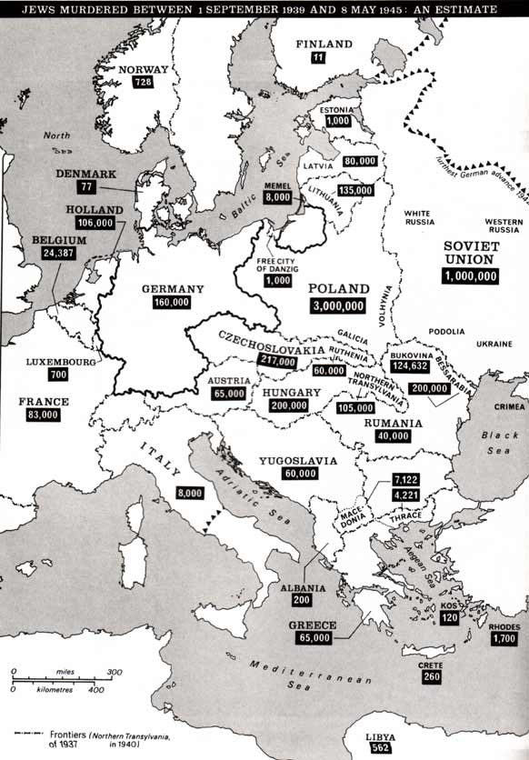 People love to throw around the phrase ‘the right side of history’. In this instance, all the distinguished people on the lists above and below will be remembered much like those compliant Germans, Poles, Lithunians, Latvians, Romanians, Dutch, French, Italians and more who somehow, almost magically hypnotically, got swept up and fell in line with the Nazi regime’s vision. For those who think it was just the Germans who perpetrated the worst humanitarian crime of all time, take a look at this morbid map of murder below, from Atlas of the Holocaust (Martin Gilbert).